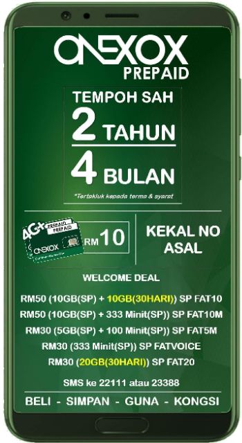 Onexox New Package Rm30 Only For 20gb Data Free 28month Validity Without Top Up Shopee Malaysia